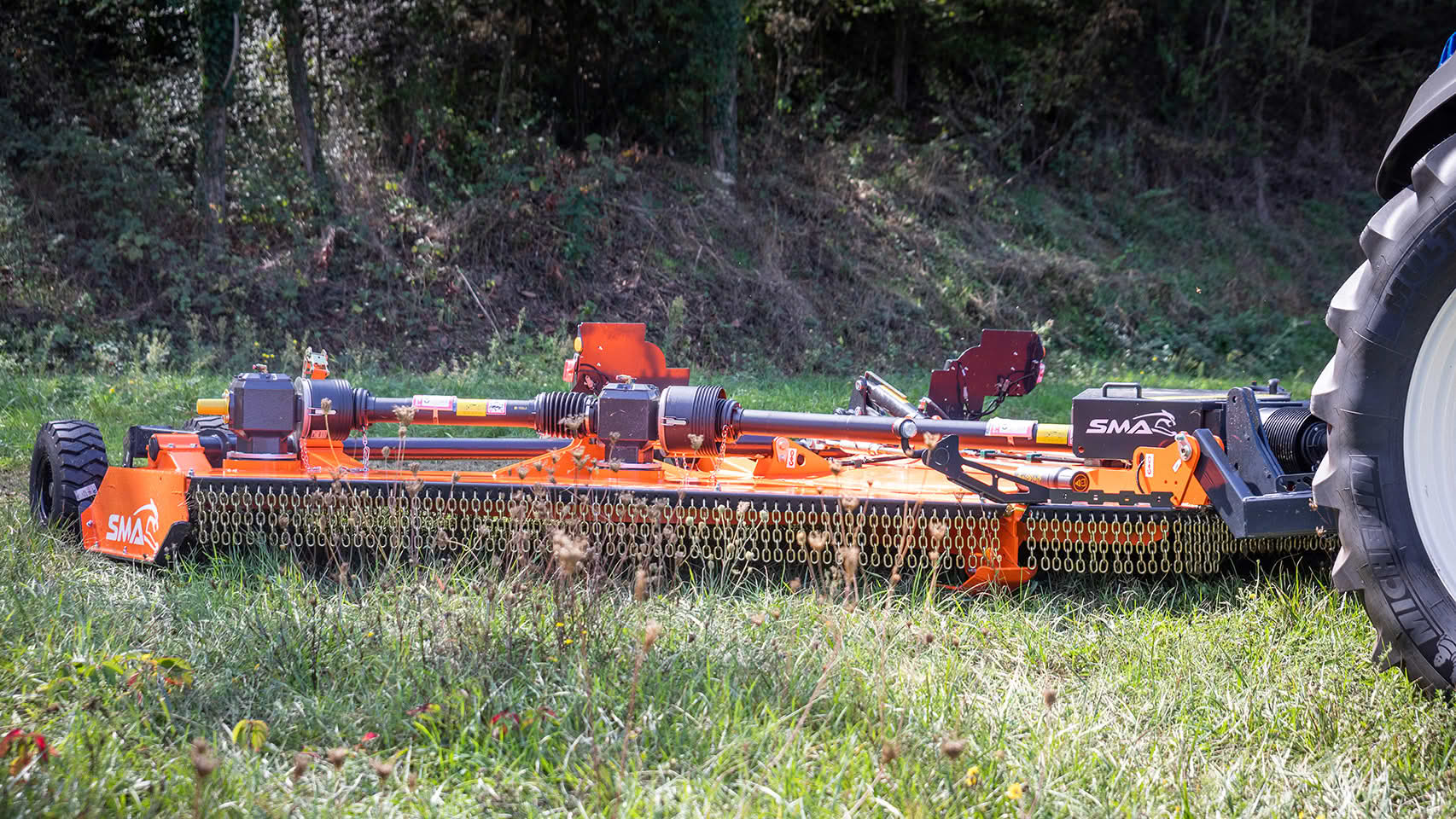 SMA présente le SBW, un broyeur grande largeur.Disponible en largeur de coupe de 6,20 m, ce broyeur à axes verticaux est particulièrement efficace pour un usage intensif, notamment dans les végétations denses.