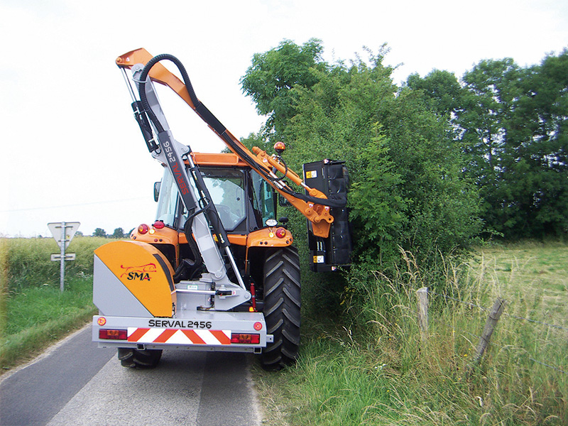• Renversement de flèche intégré de série par vérin double chambre piloté en cabine, pour chemins étroits